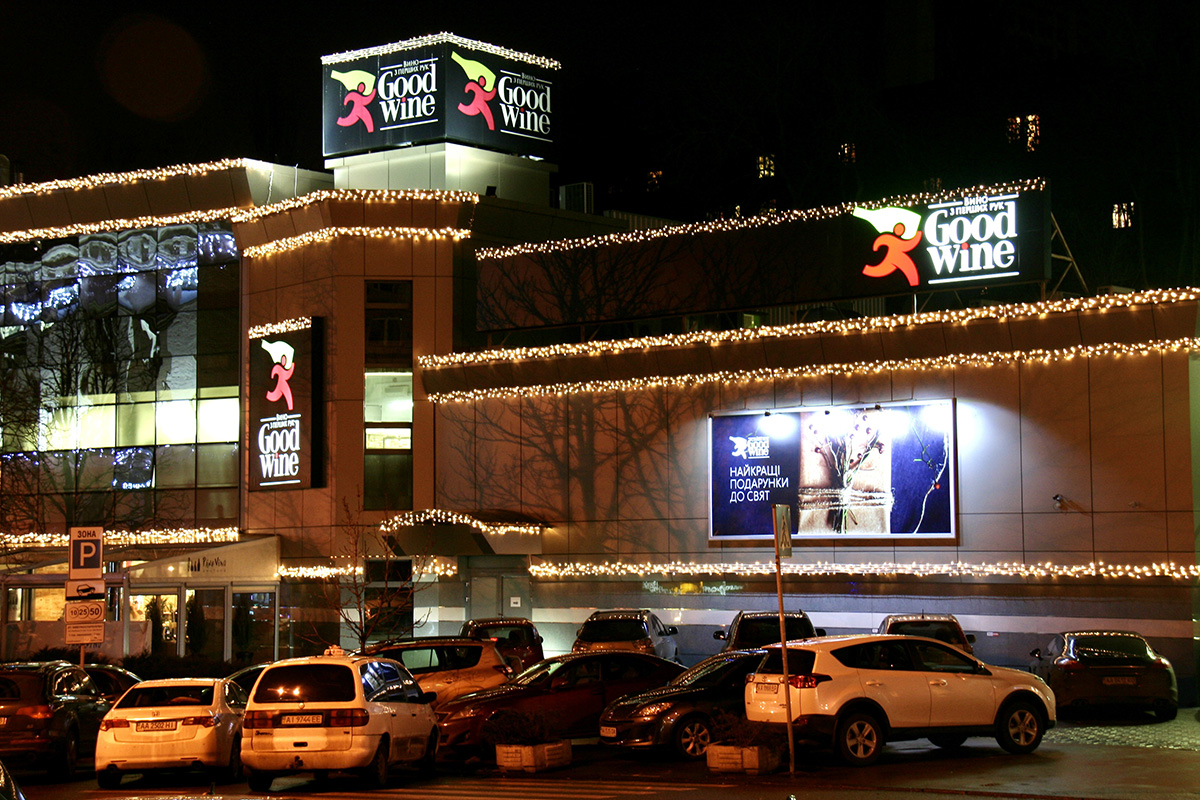 Праздничная иллюминация фасада магазина GOOD WINE г.Киев