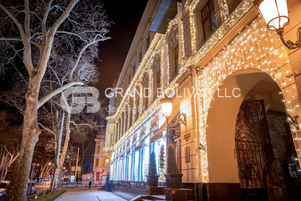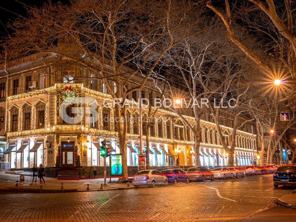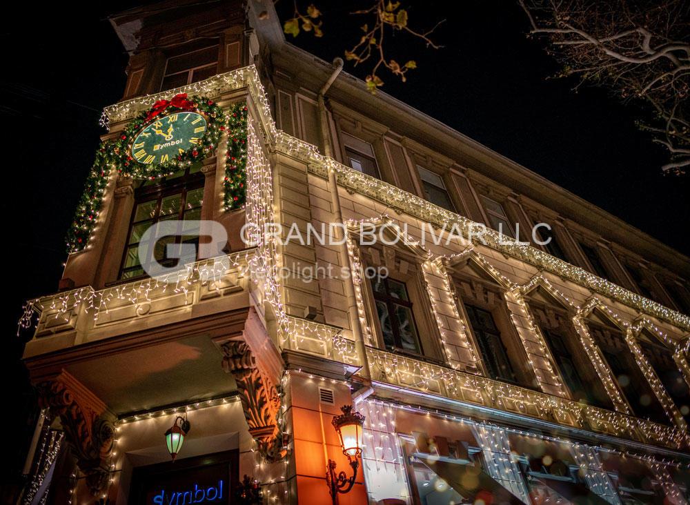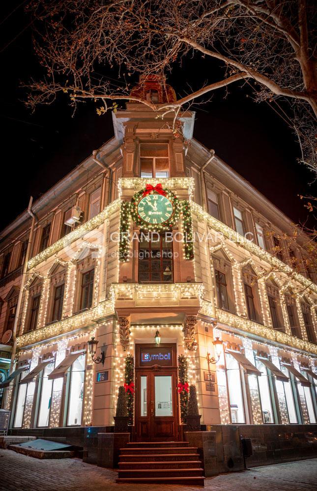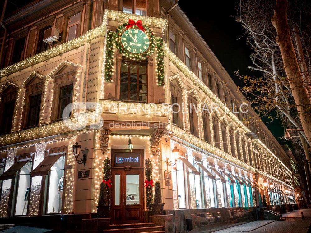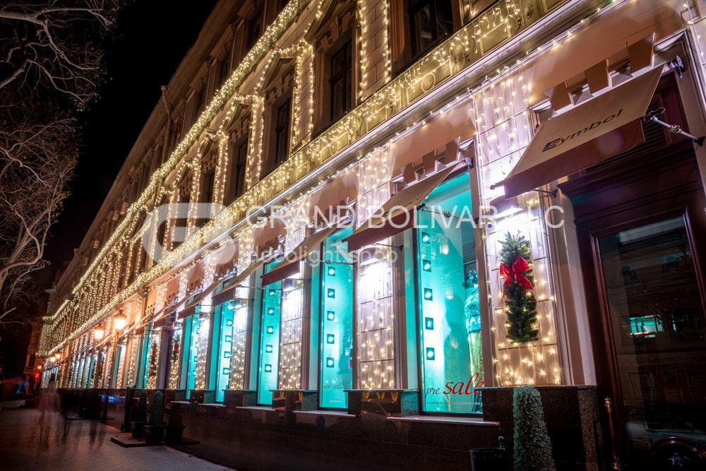 Праздничная иллюминация фасада магазина SYMBOL г.Одесса смотрится гармонично и безупречно! Она украшает здание не только к Рождественским и Новогодним праздникам, но и круглый год, меняя декор на сезонный над входом в здание.