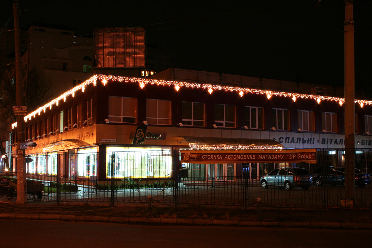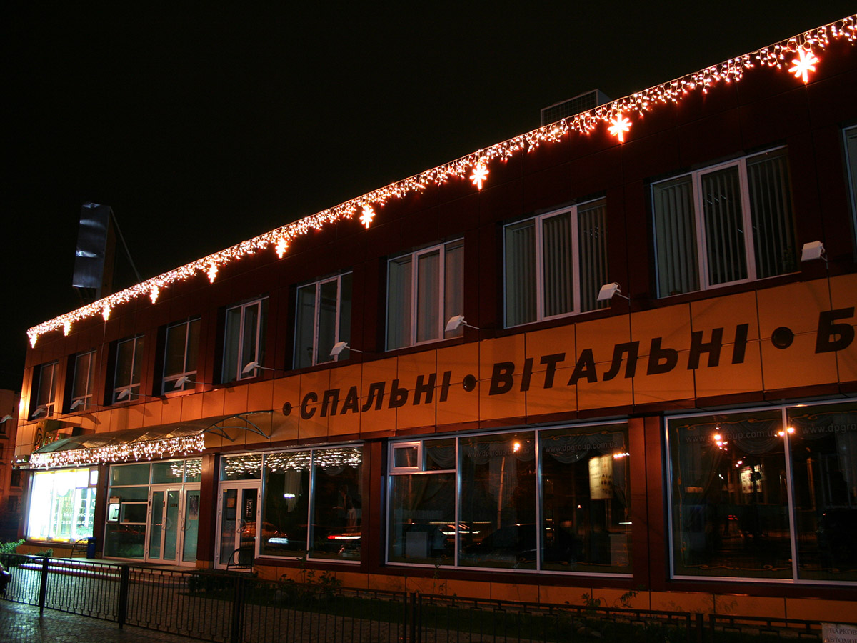 Праздничная иллюминация фасада мебельного салона DP Group г.Киев