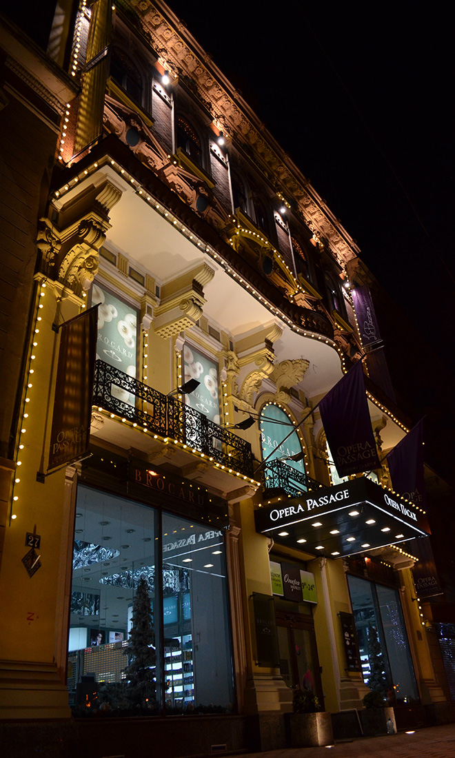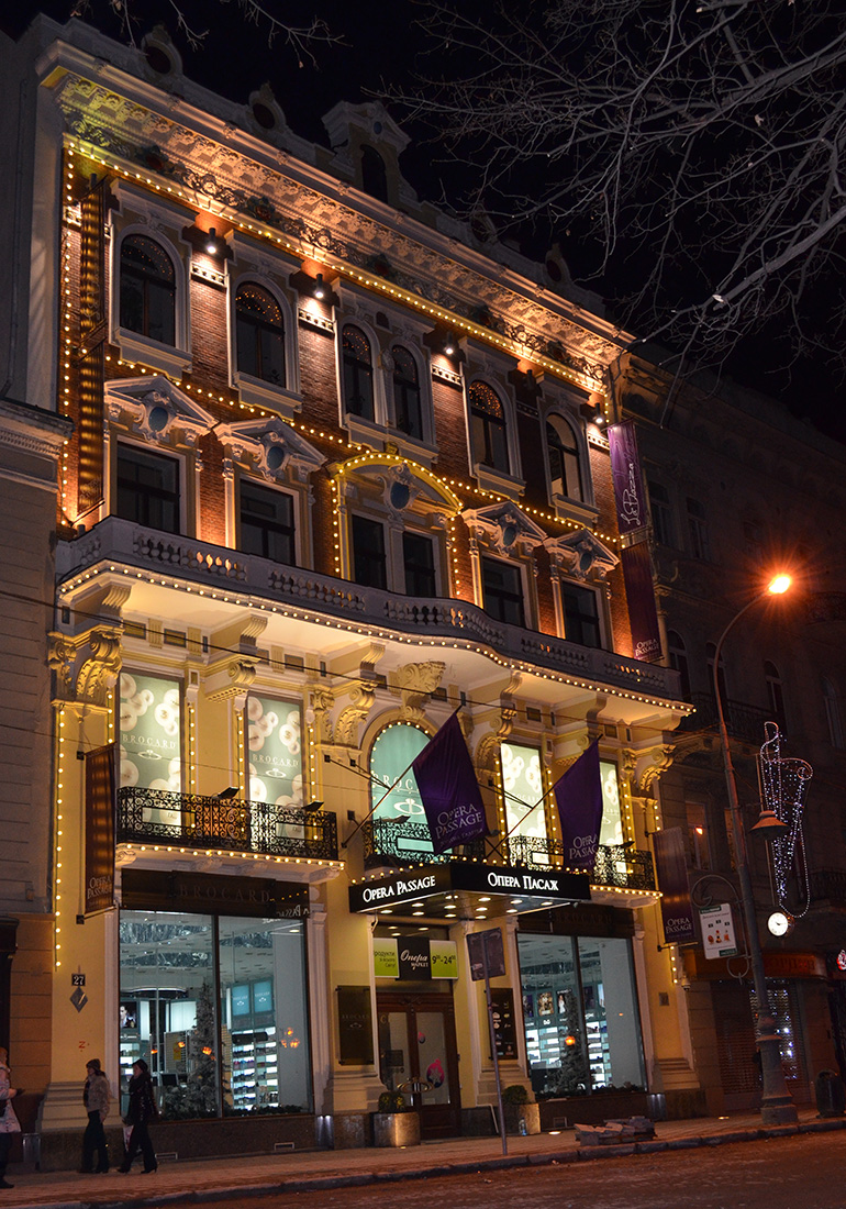 Праздничная иллюминация фасада Торговой Галереи «Опера Пассаж» г.Львов