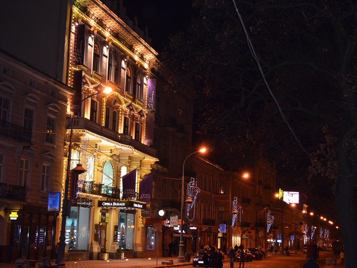 Опера Пассаж – торговая галерея в центре Львова, один из самых знаковых торговых центров города. Стояла такая задача, чтоб праздничная иллюминация фасада Торговой Галереи «Опера Пассаж» гармонично смотрелась на здании и выделяла его среди остальных на исторической улице города. Поэтому, для реализации проекта были выбраны ретро гирлянды Белт-лайт и светодиодные лампы в теплом свечении.