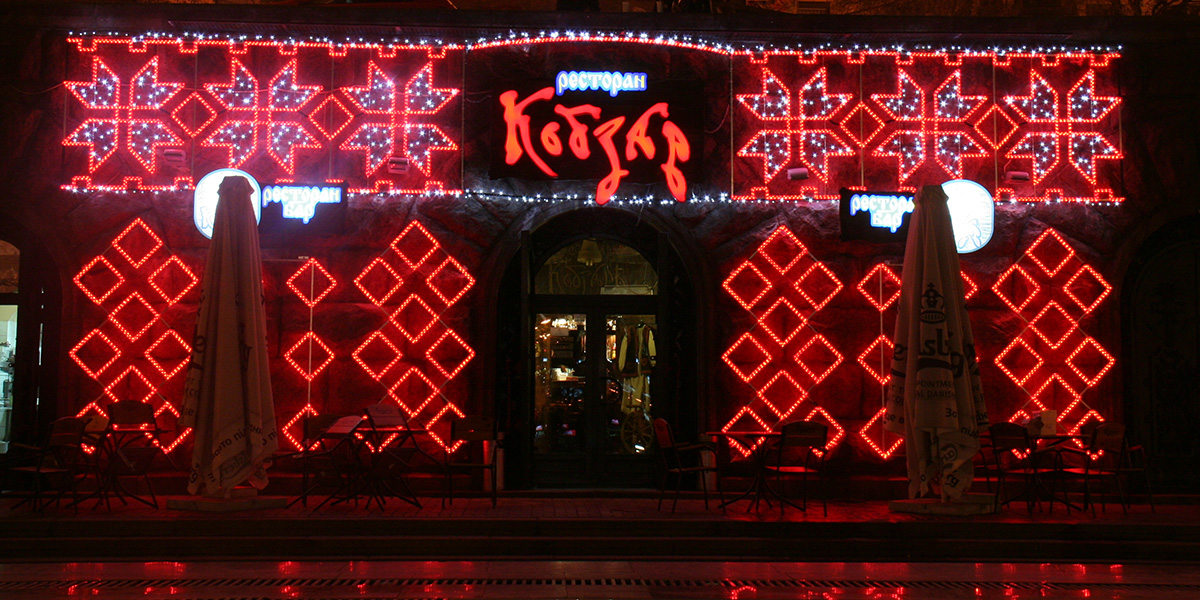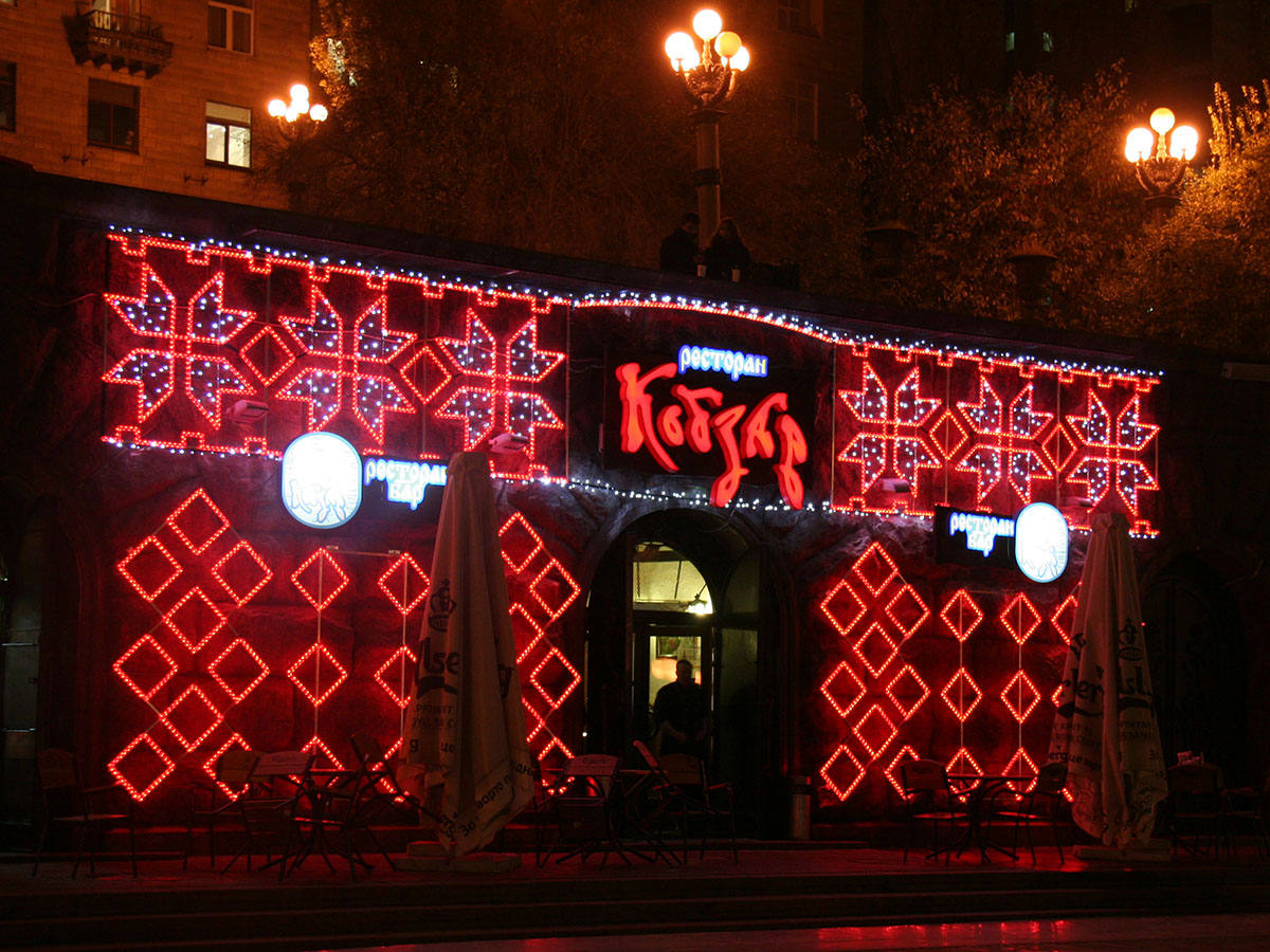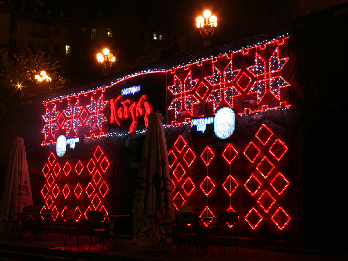 Светодиодные декорации для фасада ресторана Кобзар г.Киев