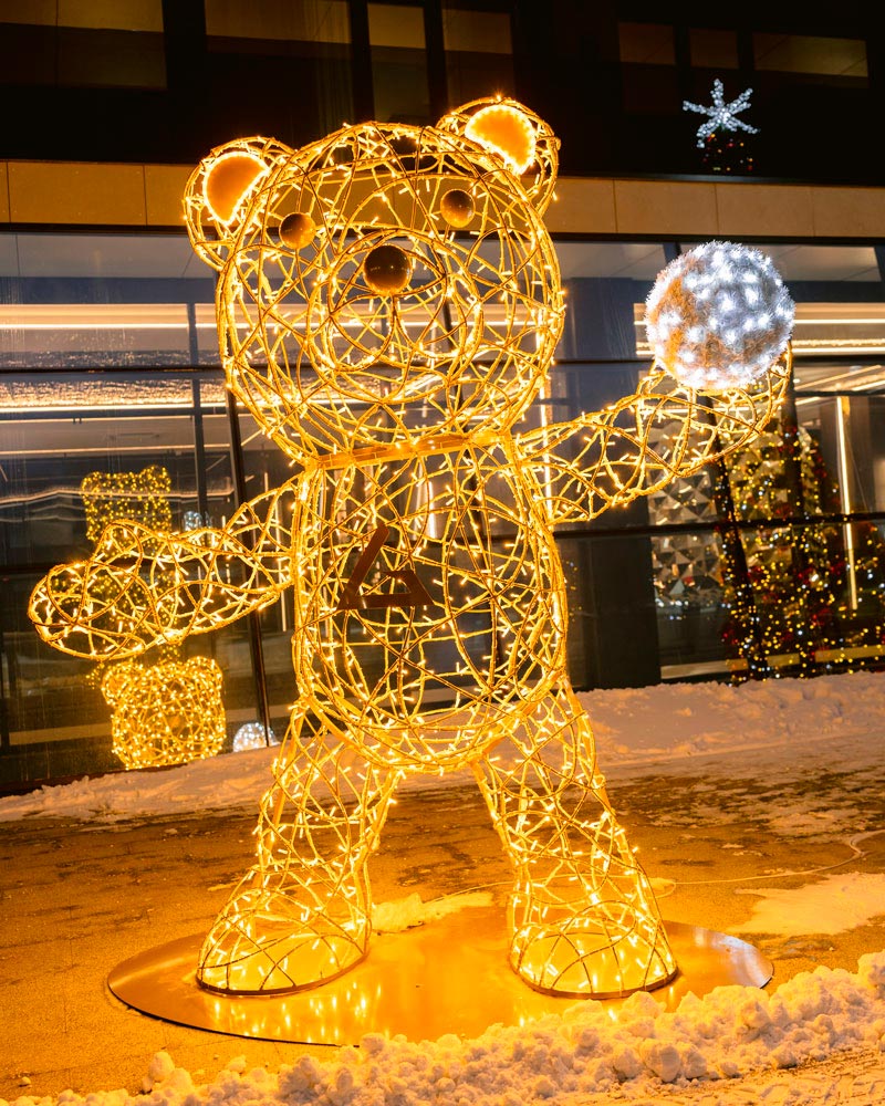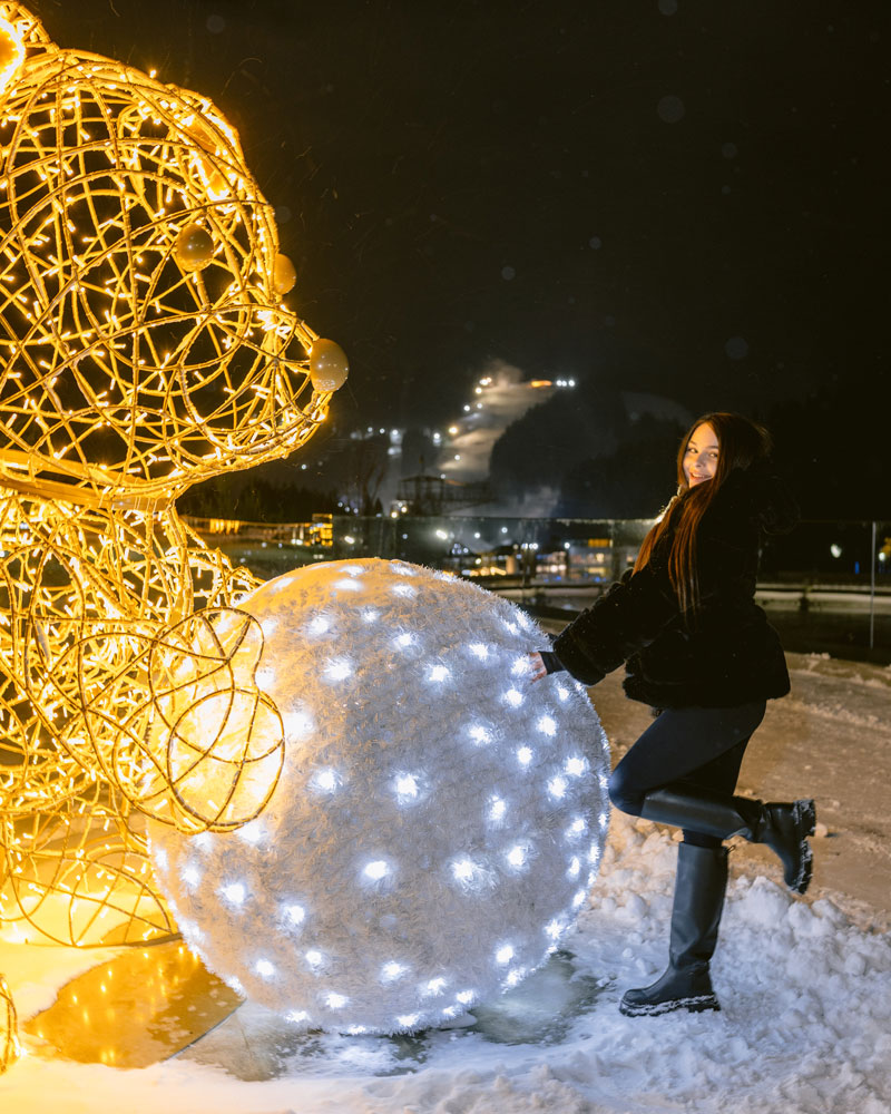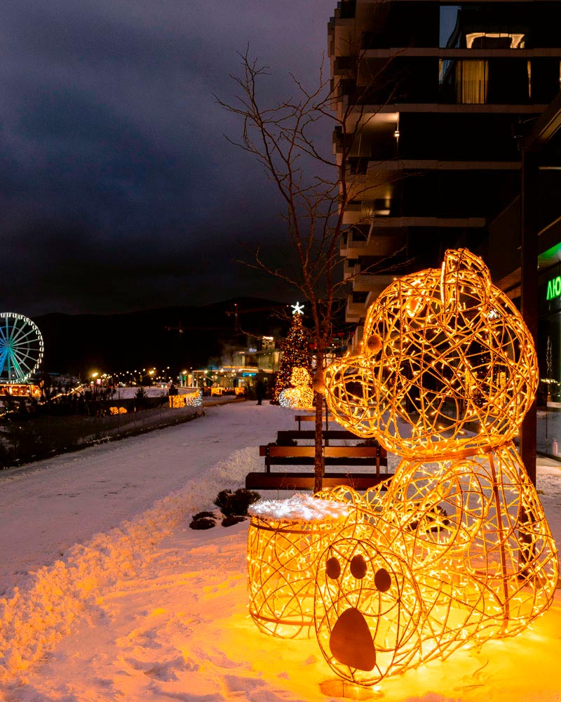 У межах загальної концепції святкової ілюмінації було створено серію з 7 світлодіодних фігур ведмедиків Тедді, кожна з яких розповідає власну історію зимових розваг на курорті: