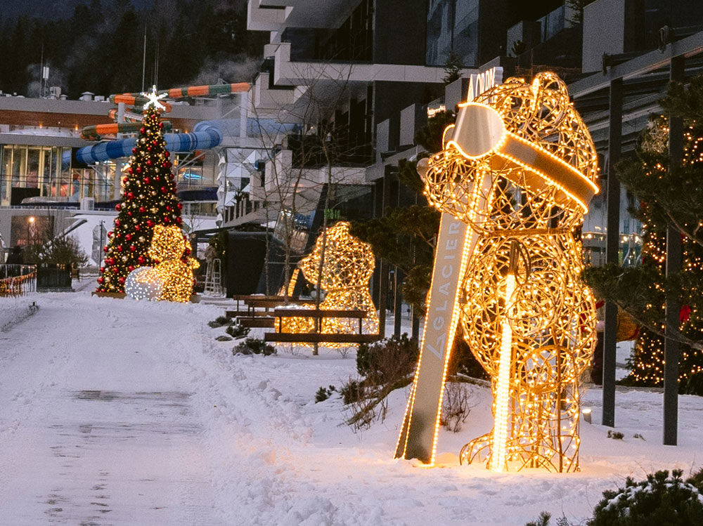 Святкова ілюмінація для готелю Glacier — це приклад того, як декор стає частиною простору, підсилює бренд локації та створює незабутні враження для гостей.