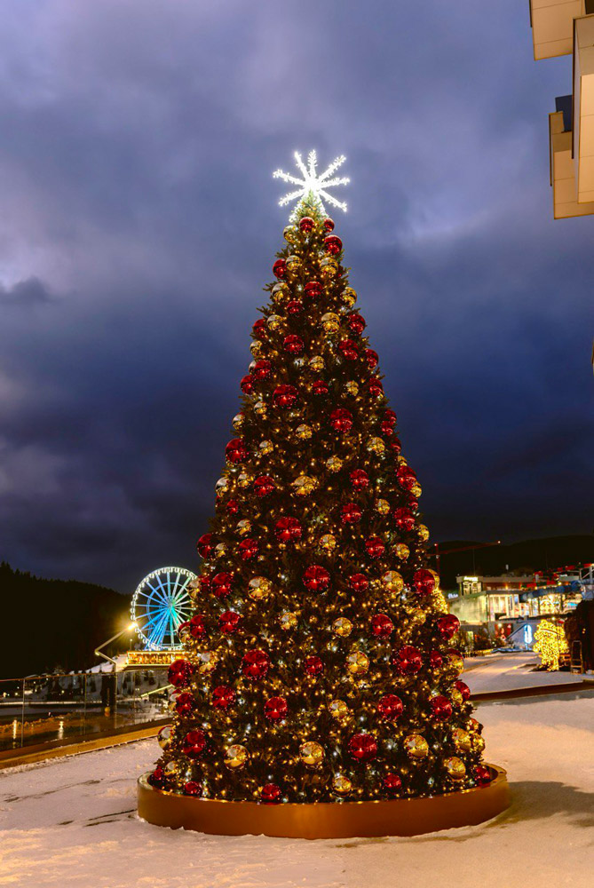 Святкова ілюмінація, а саме світлодіодні декорації органічно інтегрувалися в зимове оформлення готелю, формуючи атмосферу курортного простору протягом усього зимового сезону.