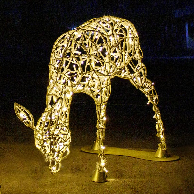 Маленький светлодиодний олень высотой 1 метр хорошо смотрится с фигурами большего размера, например с оленем высотой 2,6 метра и другими.