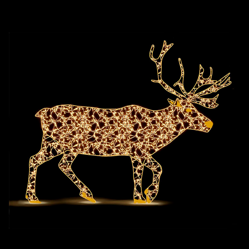 Світлодіодна фігура ПІВНІЧНИЙ ОЛЕНЬ виготовлена на основі міцного алюмінієвого каркаса, який покритий порошковою фарбою, використовуючи професійні світлодіодні гірлянди високої якості від Аdamlights.