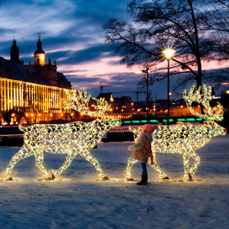 Світлодіодна фігура ПІВНІЧНИЙ ОЛЕНЬ 230. Протягом останніх кількох років світлодіодні олені стали невід’ємною частиною святкової атмосфери на Різдвяні свята, і вважаються найпопулярнішими класичними новорічними декораціями. Вони є не лише виразним елементом святкової атмосфери, але й невід’ємною частиною традиційного різдвяного декору, який створює неповторний затишок в приміщеннях та на вулицях. Світлодіодні олені, які мають реалістичний дизайн та яскраве освітлення, завжди здатні викликати почуття радості та свята у кожному, хто їх бачить. Вони створюють чарівну атмосферу, яка дарує радість та надихає на спогади про святкові моменти.